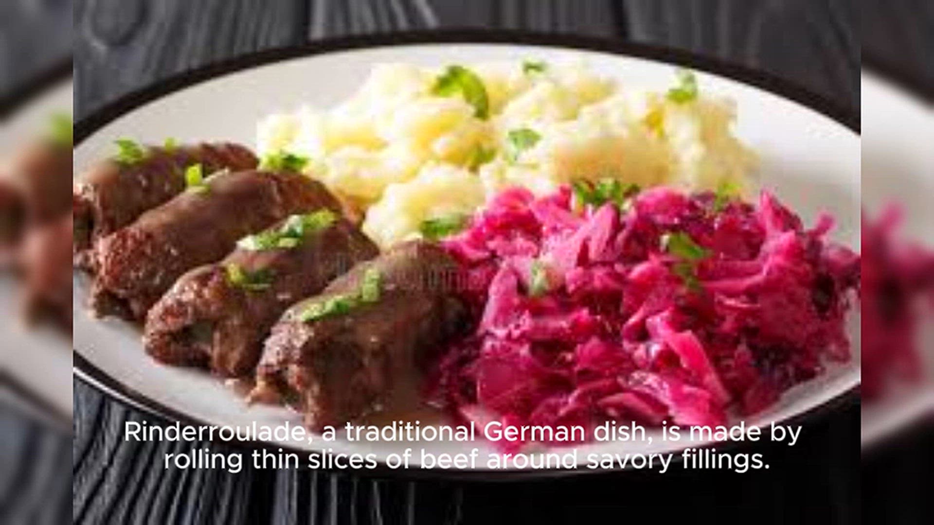 Rinderroulade, a traditional German dish, is made by rolling thin slices of beef around savory fillings.