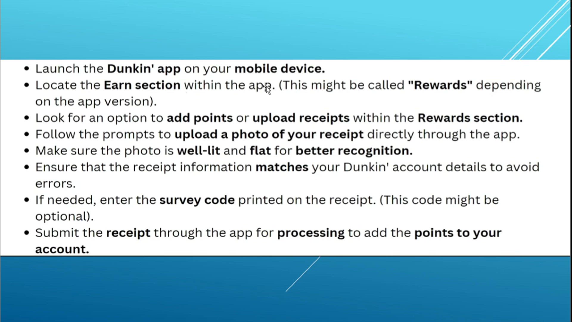 Learn how to add a receipt to the Dunkin' Donuts app with our complete guide for 2024 in this informative video. We'll provide step-by-step instructions on how to upload and manage receipts within the app. Perfect for Dunkin' Donuts customers looking to take full advantage of loyalty rewards and promotions.