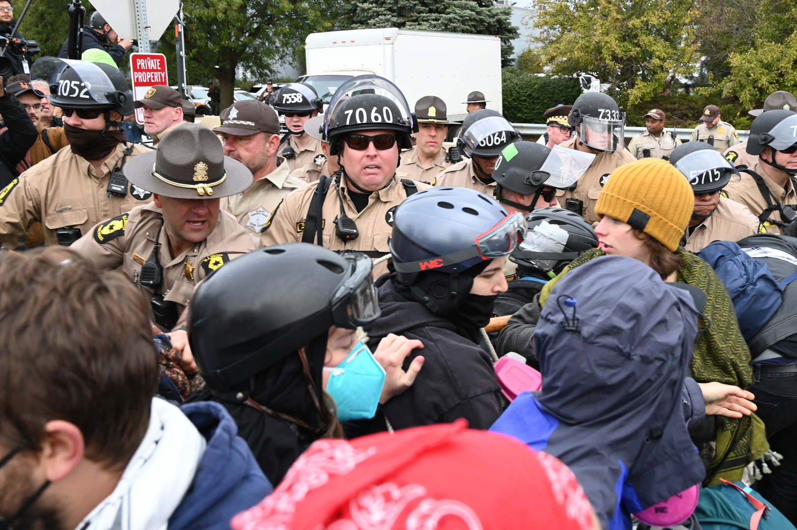 Protesters at the Broadview Immigrant and Customs Enforcement (ICE) facility near Chicago scuffled with police Friday morning.