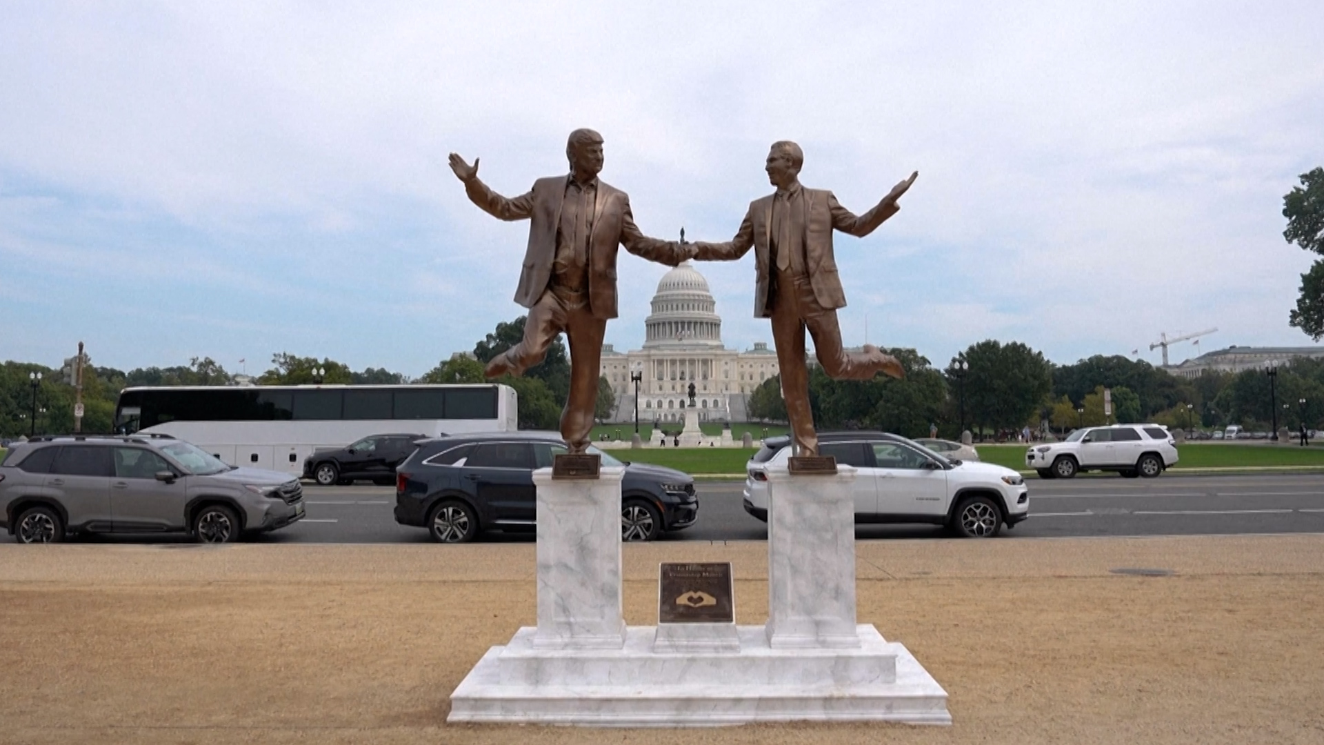 A pop-up statue showing US President Donald Trump holding hands with convicted sex offender Jeffrey Epstein appeared near the US Capitol.