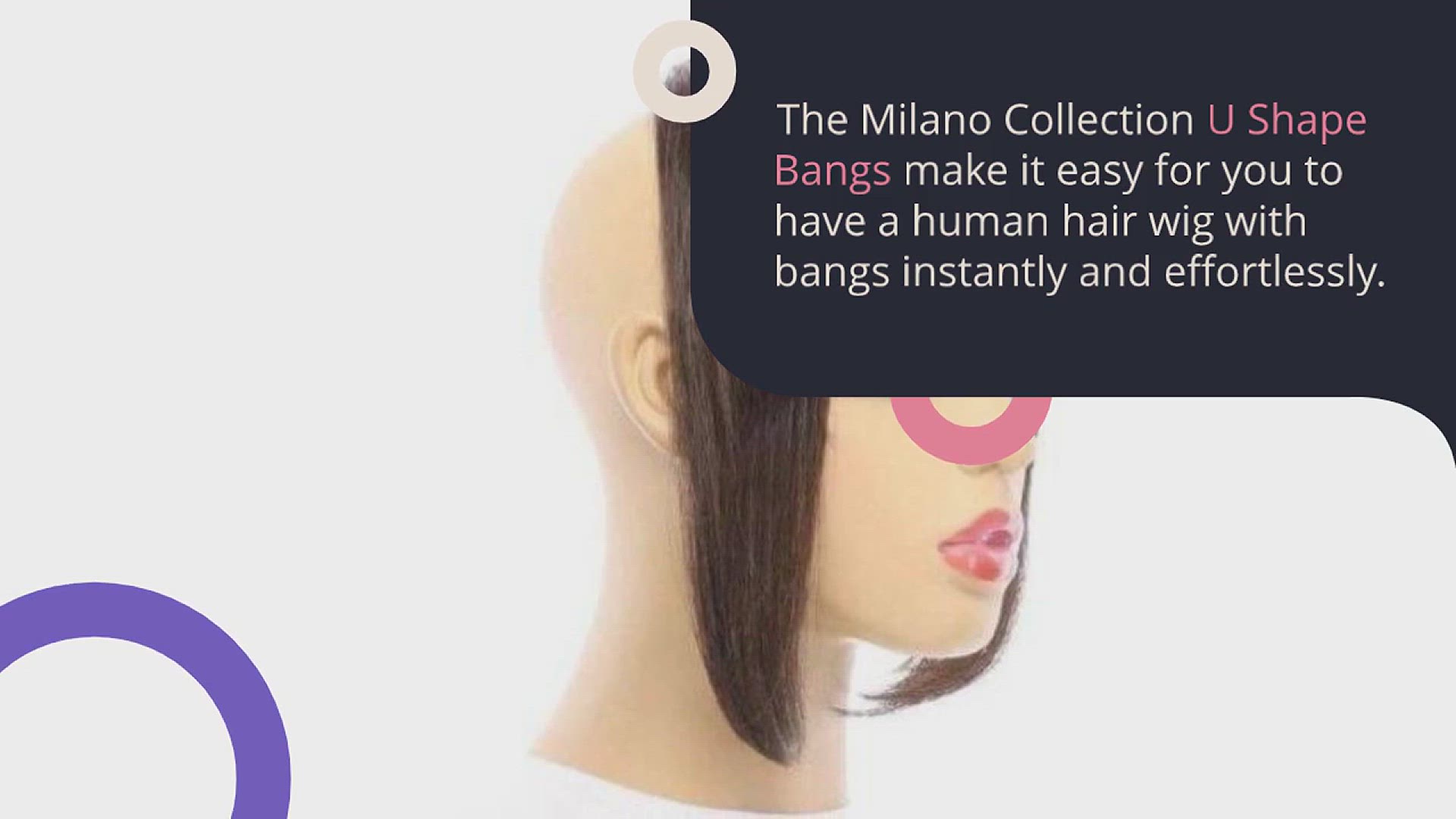 The Milano Collection U Shape Bangs make it easy for you to have a human hair wig with bangs instantly and effortlessly. Our versatile bang wigs require no commitment. Just clip the bangs to your natural (bio) hair or add the bangs to your wig, if you desire a human hair wig with bangs. The U-Shape design allows you to create bangs instantly that blend perfectly with your bio hair, wig, or topper. If you want to change up the look of your human hair wig with bangs, just unclip the U Shape Bangs, and you're instantly bang-free. It's as easy as that. So whether you prefer bang wigs, or wigs without bangs, our Milano Collection U Shape Bangs make it easy for you to change up your look instantly. We also offer Fringe Topper Bangs which offer great versatility and ease of wearing bangs with your alternative hair. Fringe Topper bangs provide full coverage around your front hairline and bang area.