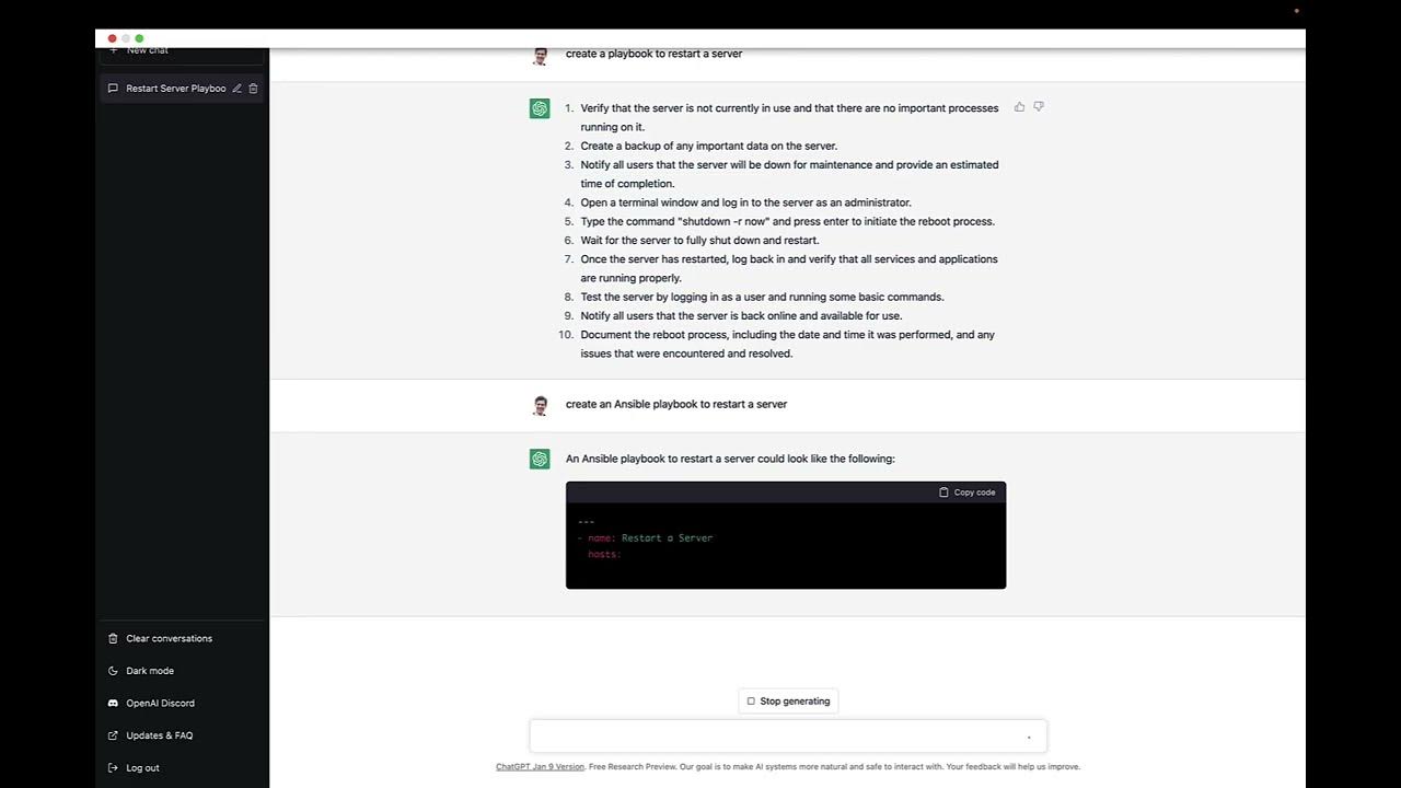 How to use the OpenAI ChatGPT tool to create some Ansible Playbook code for testing.