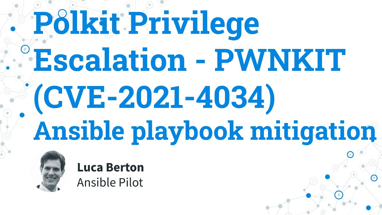 How to automate the mitigation of Polkit Privilege Escalation - PWNKIT (CVE-2021–4034) on RedHat-like systems using the Ansible Playbook 1.0 published on RHSB-2022–001. Line by line comment and live demo on vulnerable Red Hat Enterprise Linux 8.5.