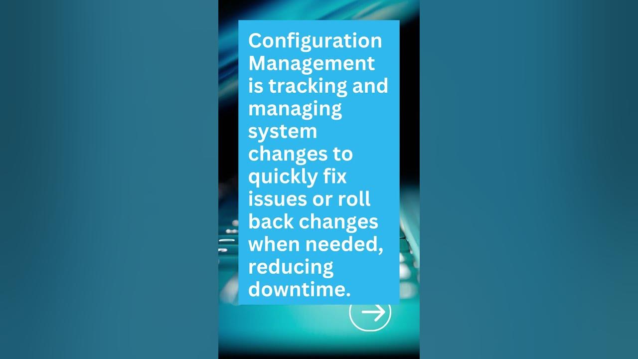 Configuration Management is tracking and managing system changes to quickly fix issues or roll back changes when needed, reducing downtime.
