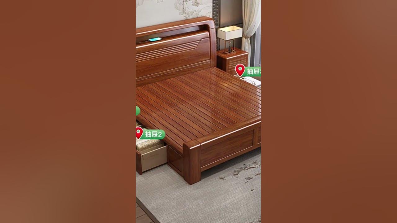 Walnut full solid wood bed master bedroom 1.8m double bed bedside storage 2m big bed factory direct sale 1.5m single bed