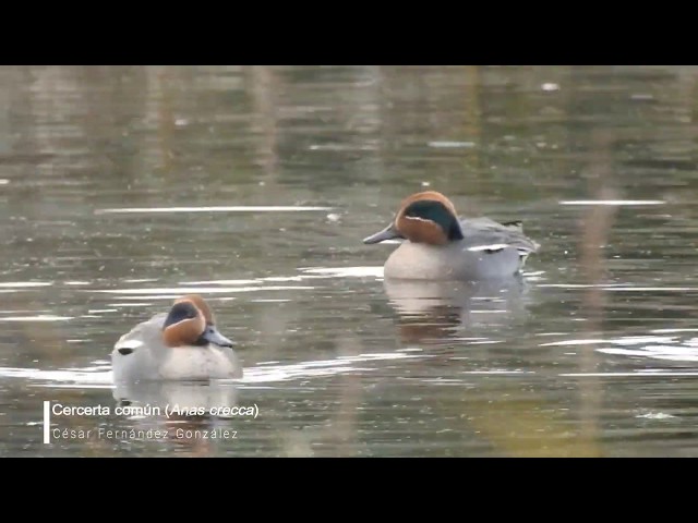 La Cerceta común (Anas crecca) es un ave fácil de reconocer por su peqiueño tamaño (es el pato más pequeño de cuantos aparecen en la península) y por el llamativo diseño de los machos, en el que destaca un llamativo antifaz verde en la cabeza de color castaño. Vídeo realizado por César Fernández en la ría de Villaviciosa (Asturias).