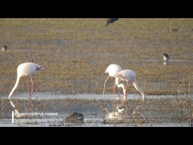 El flamenco común (Phoenicopterus roseus, https://goo.gl/BP3LAu) es una de las aves más esbeltas y llamativas de los humedales mediterráneos. Vídeo realizado por César Fernández en el Rocío, Doñana.