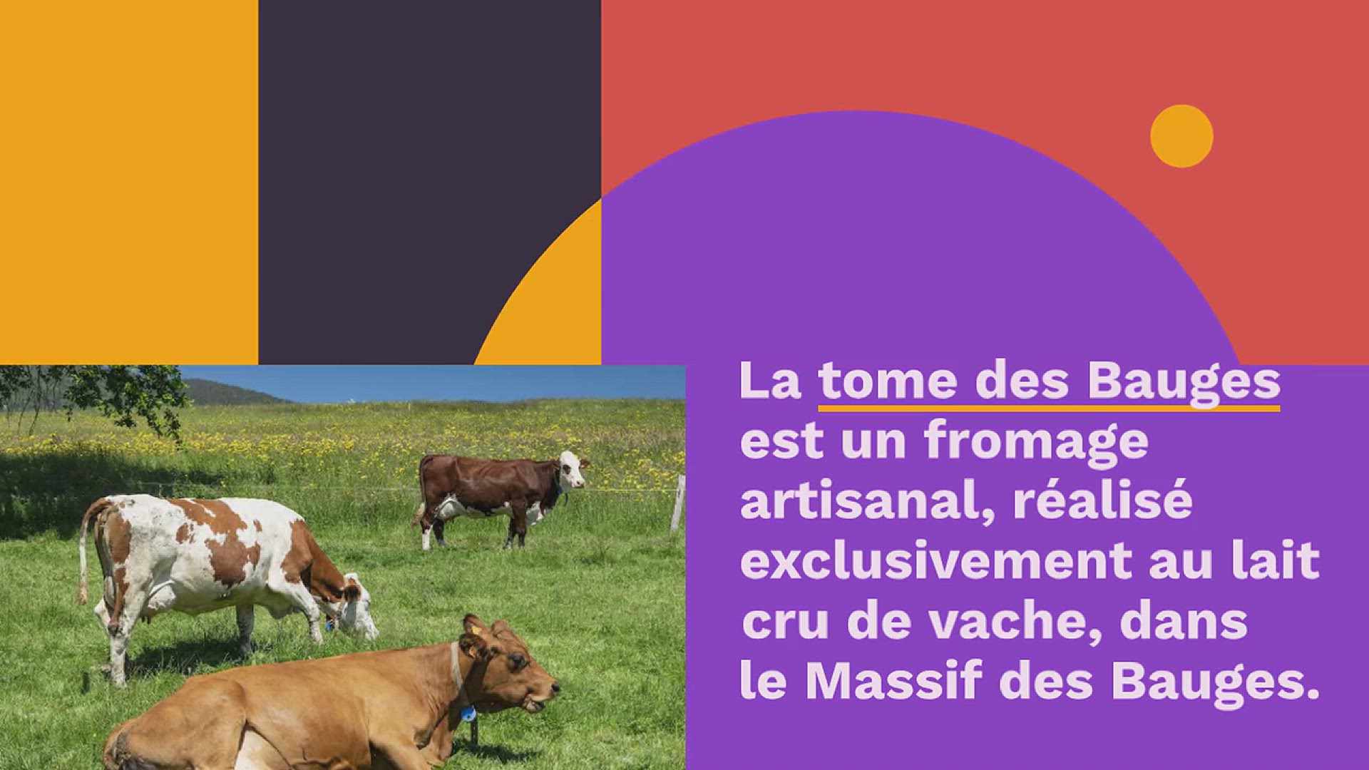 La tome des Bauges est un fromage artisanal, réalisé exclusivement au lait cru de vache, dans le Massif des Bauges. Il bénéficie d’une AOP depuis 2007. C’est un fromage à pâte pressée non cuite. Sa croûte est grise et tourmentée, avec du relief, pouvant développer des fleurs de couleur jaune, rouge, rose ou blanche. Quant à sa pâte, à l’intérieur, elle est de couleur ivoire à jaune. C’est un fromage qui développe des arômes fruités, allant du lactique au subtilement boisé.