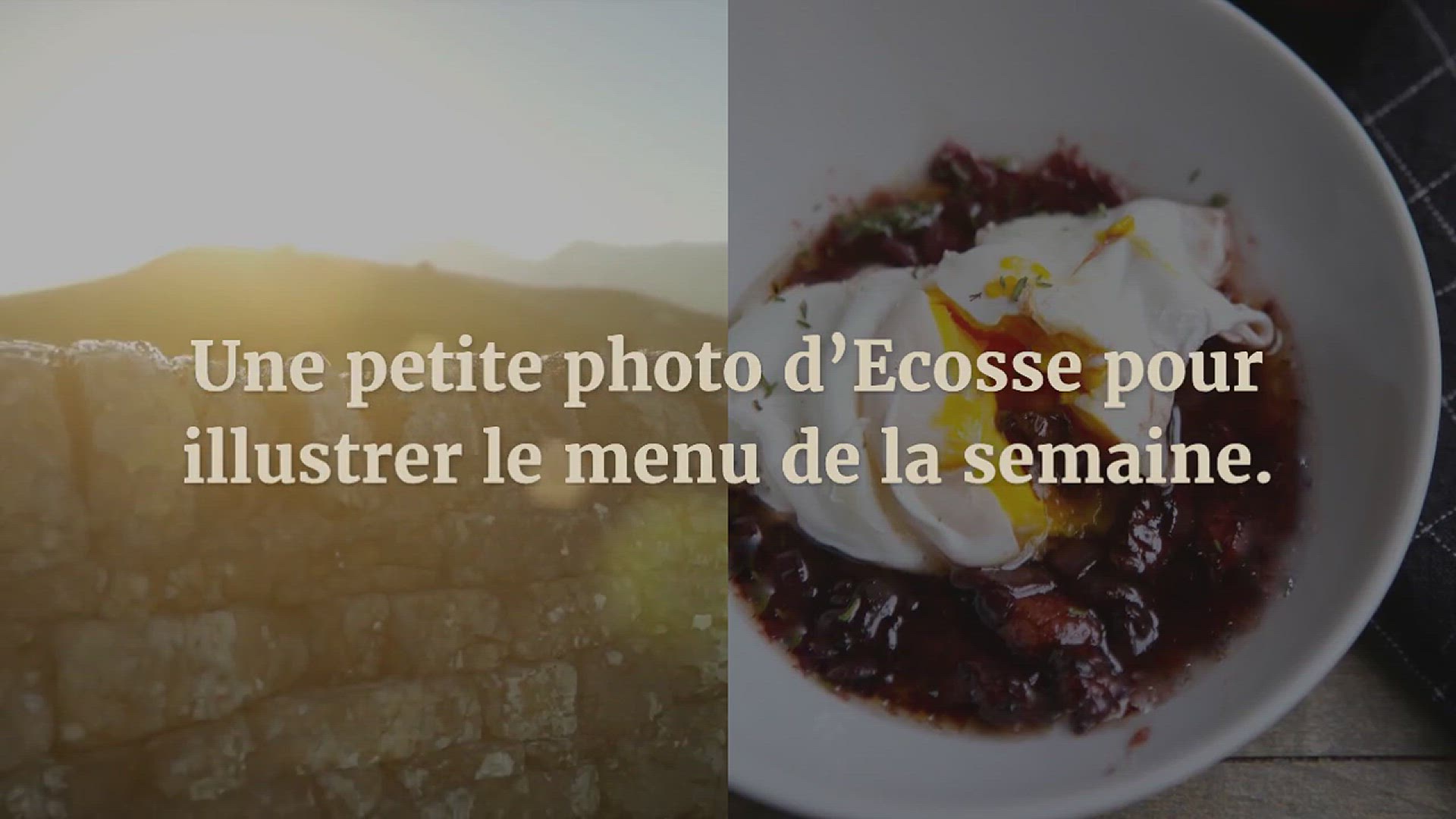 Une petite photo d’Ecosse pour illustrer le menu de la semaine.