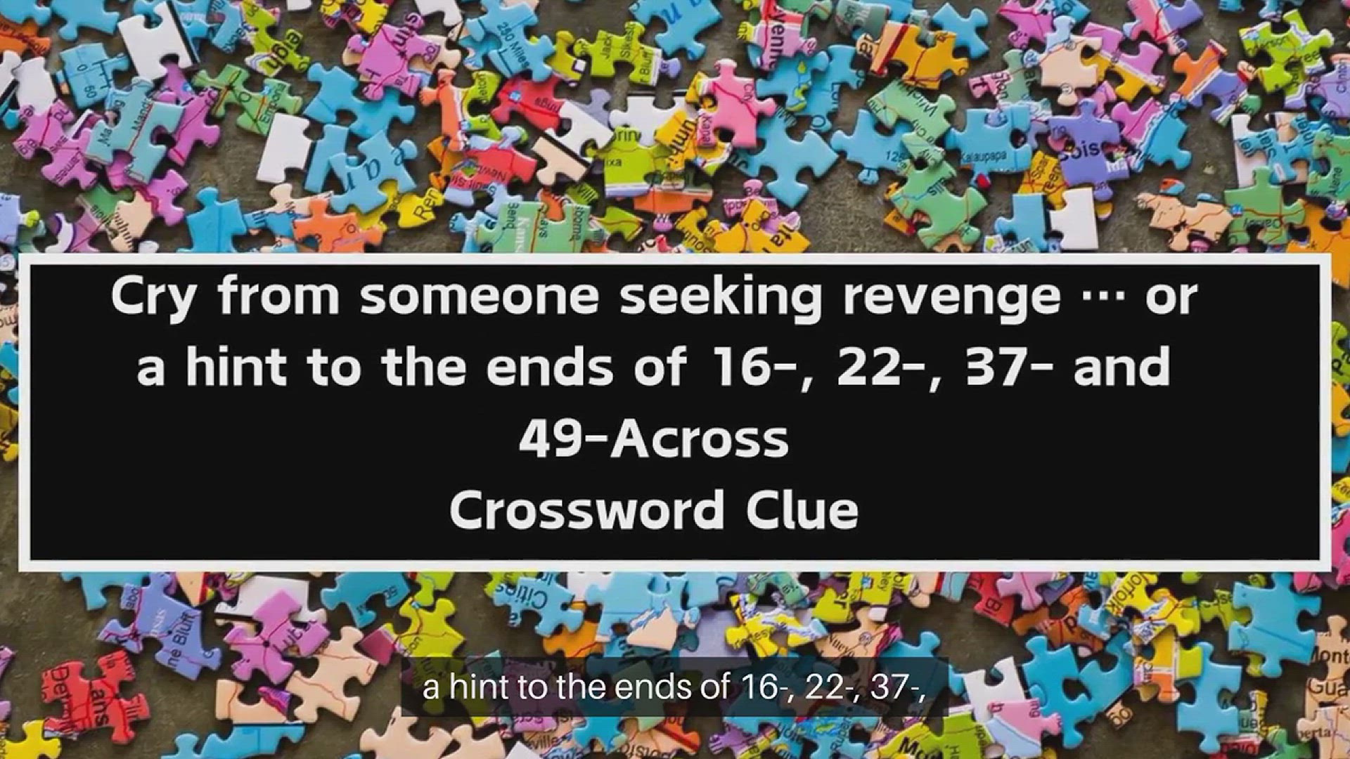Cry from someone seeking revenge … or a hint to the ends of 16-, 22-, 37- and 49-Across (15) NYT Crossword Clue