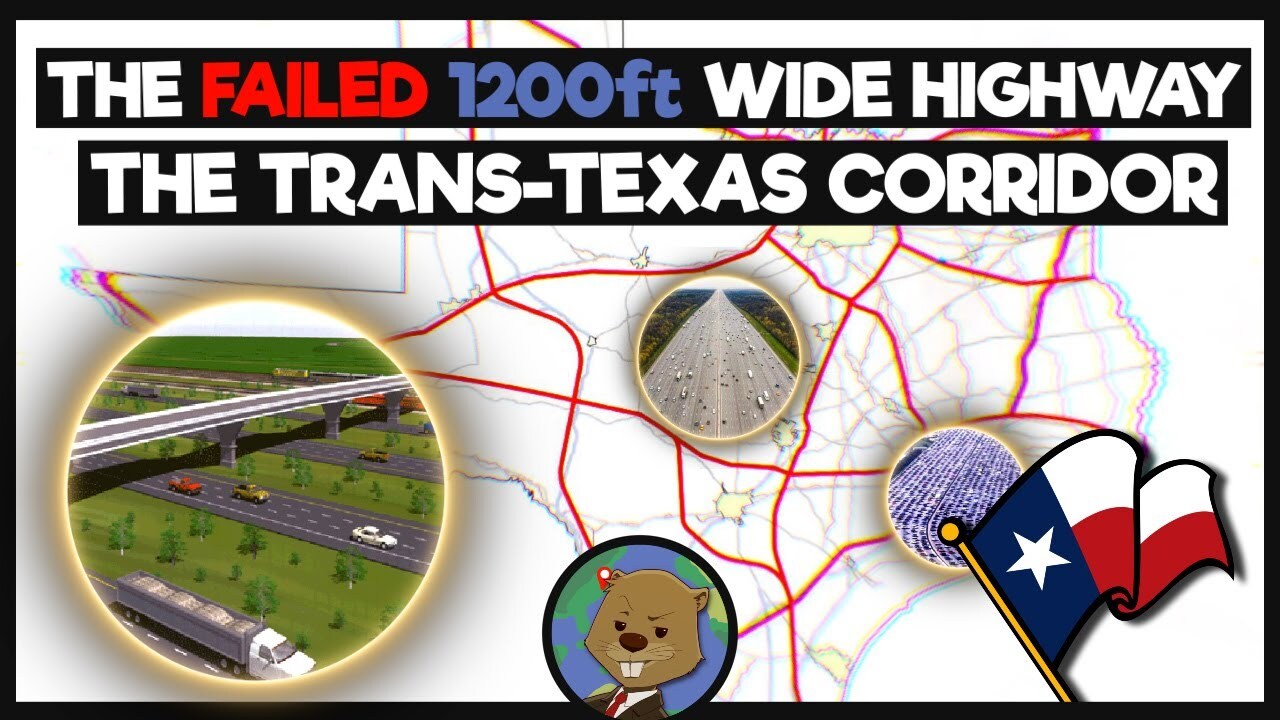 Go to https://nordvpn.com/beavergeography to get a 2-year plan + 4 months free with a huge discount. It’s risk free with Nord’s 30 day money-back guarantee! Texas's 1200 ft Wide Superhighways And Why They Failed Texas, a state known by many for its extremely freeway-heavy expansion philosophy. While alot of the country has moved on from the idea of new large divided highways in their states, Texas has continued work on several projects around the state that would upgrade and construct new highways. Just recently on the channel, I talked about a new freeway in the state built in the 2000s. While researching for this video, I found a plan to build a network of superhighways from the Mexican to Oklahoman border. These superhighways would be up to 1,200 feet wide, or the length of 4 football fields, and they got alot closer to actually happening than you’d think. Help Out The Channel And Become A Member With Awesome Perks! https://www.youtube.com/c/BeaverGeography/join Socials: Discord Server: https://discord.gg/5mvmZY6F3U Twitter: https://twitter.com/BeaverGeography Shorts Channels: https://www.youtube.com/@BeaverGeographyShorts Minecraft Channel: https://www.youtube.com/Beaverman1 TikTok: https://www.tiktok.com/@beavergeography Contact Me! [email protected] Thumbnail Maker: