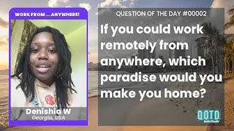 QOTD 00002: Where in the world would is your remote workplace paradise? * RECORD YOU OWN ANSWER: https://beontheair.com/QOTD-Game-Show/q/Work-From-Anywhere.html Imagine if “work from anywhere” literally meant you got to choose any location on Earth you wanted! Where would you travel to experience remote work paradise? Tell us about the big city, small village, or ocean-view expanse that you’d make your dream remote workplace! * WATCH & VOTE: 24/7 show running now: https://qotd.beontheair.com * SEE THE BEST: Watch the Thursday Big Show each week, live at 8:30 am: https://youtube.com/ @qotdgame * WHO WE ARE AND HOW TO PLAY: Join us on the air and compete against other fans! https://www.beontheair.com/QOTD-Game-Show/how-to-play.html #BarbieMusic #BarbiePop #BarbieDance #remoteworkparadise #remoteworklife #digitalnomad #locationindependent #workfromanywhere #gameshow #qotd #questionoftheday
