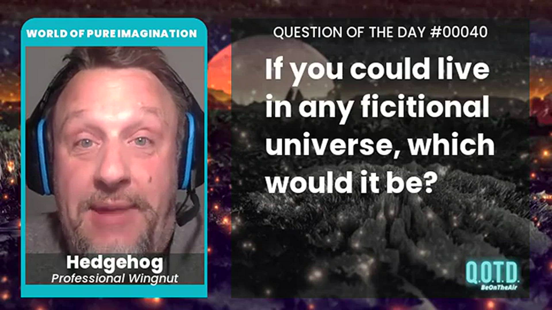 * RECORD YOU OWN ANSWER: https://beontheair.com/QOTD-Game-Show/q/Fictional-World-Fantasy.html