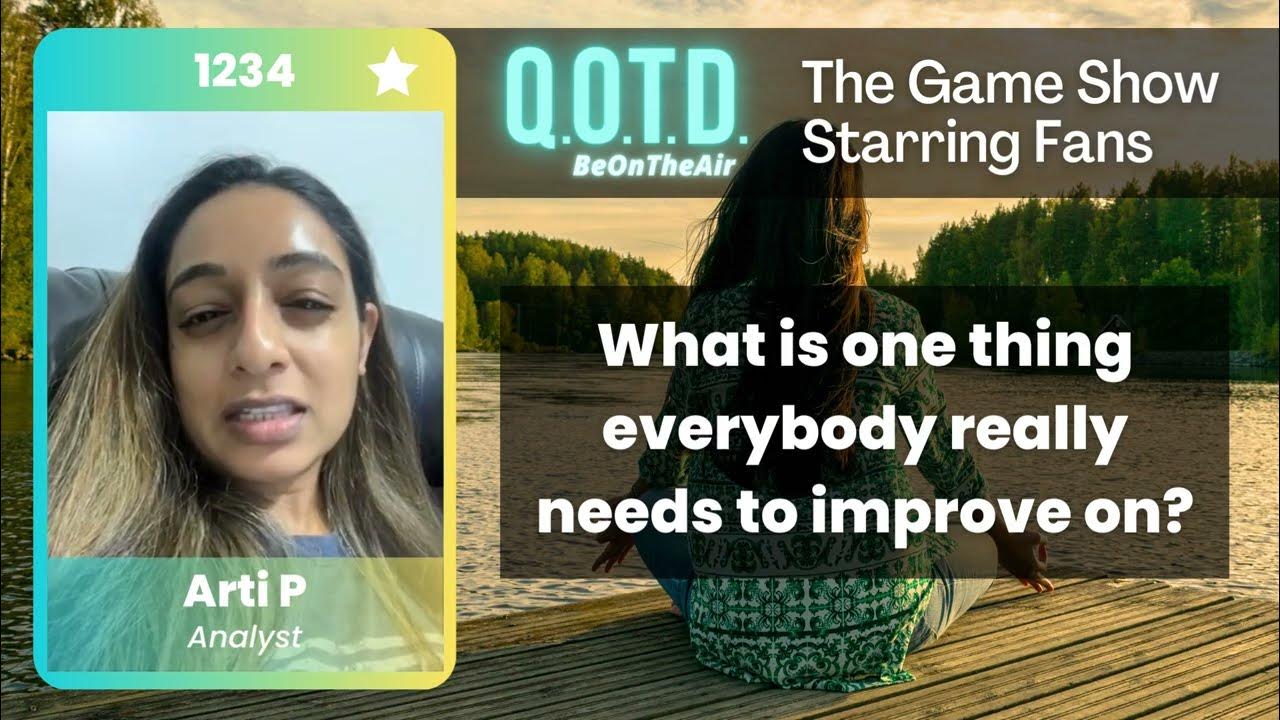 QOTD 00051: What’s something we can all improve on? The NBA playoffs are a thrilling time for basketball fans! Watching elite athletes can inspire us to strive for excellence in our own lives, whether it's in our careers, relationships, or personal growth. Tell us, champ! What can you do better to achieve your own version of success? * RECORD YOU OWN ANSWER https://beontheair.com/QOTD-Game-Show/q/Self-Improvement.html * WATCH & VOTE: 24/7 show running now: https://qotd.beontheair.com/ * SEE THE BEST: Watch the Friday Big Show each week, live at 8:30 am: https://qotd.beontheair.com/ #gameshow #qotd #questionoftheday #freegame #freegames finals #NBA #basketball #nbaplayoffs #nbafinalschampionship #nbachampions #championship #selfimprovement #selfoptimization #selfhelp #motivation #selflove #selfcare #personalgrowth #mentalhealth