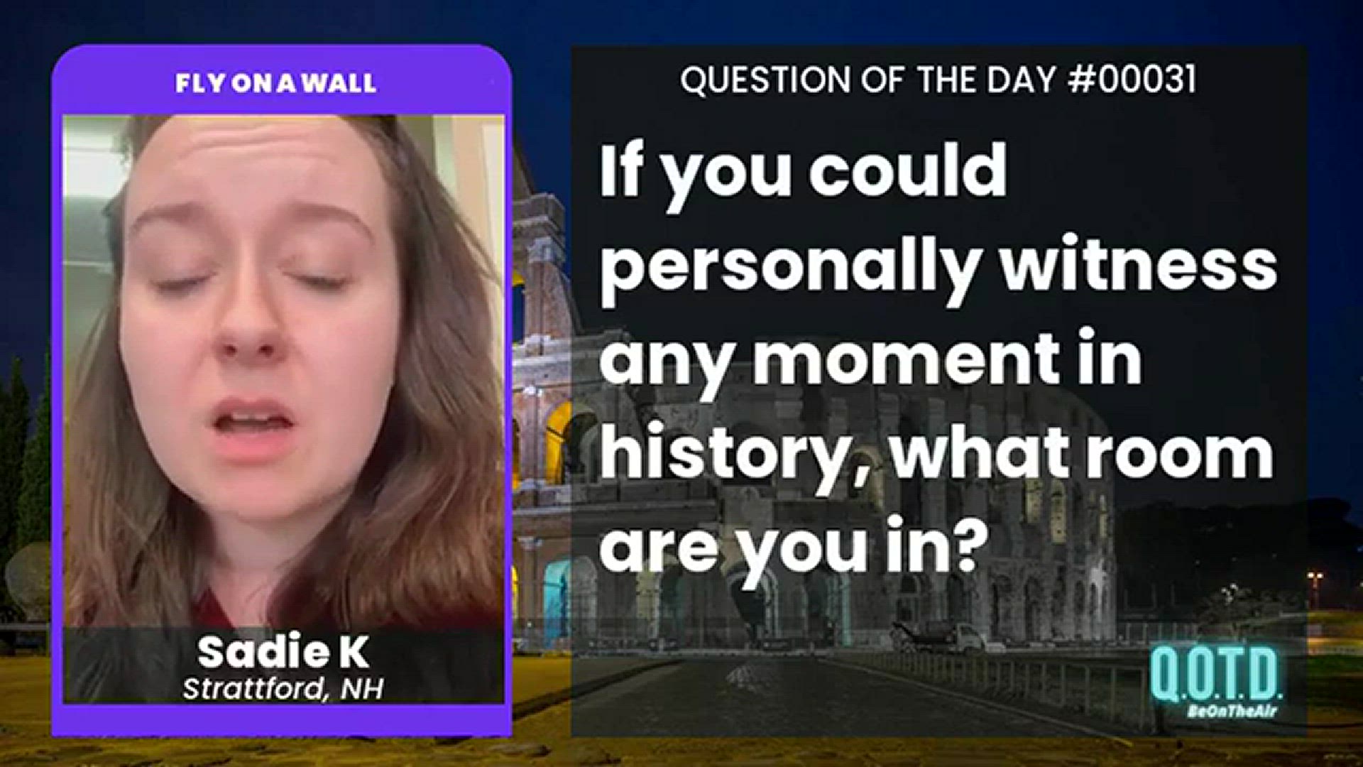 * RECORD YOU OWN ANSWER: https://beontheair.com/QOTD-Game-Show/q/History-Witness-Fantasy.html