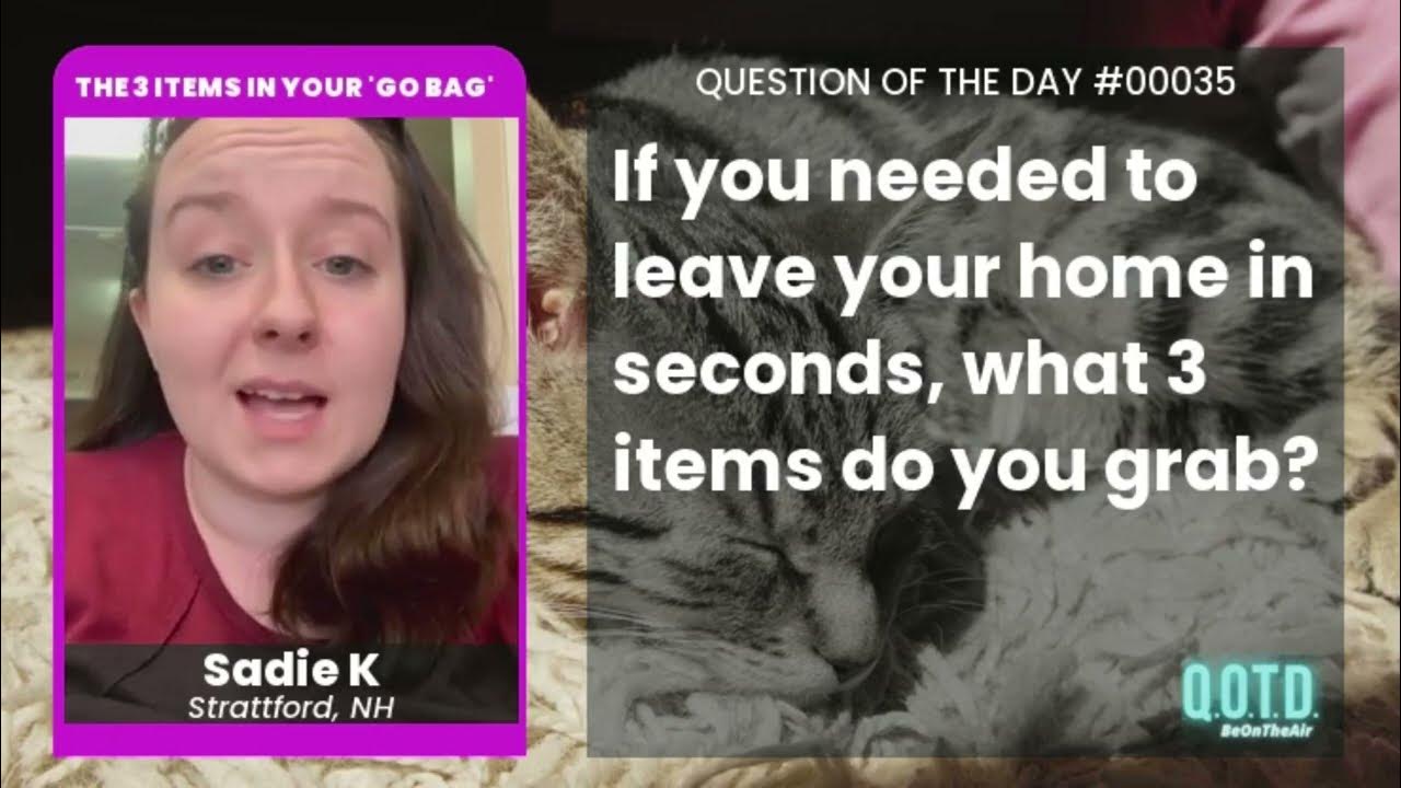 QOTD 00035: Quick! Grab 3 essential items from home you can’t live without! Pretend you're being evacuated in an emergency and only have seconds to grab your most precious or essential items. Which three things would you definitely take with you? * RECORD YOU OWN ANSWER: https://beontheair.com/QOTD-Game-Show/q/Must-Have-3-Items.html * WATCH & VOTE : 24/7 show running now: https://qotd.beontheair.com/ * SEE THE BEST: Watch the Friday Big Show each week, live at 8:30 am: https://qotd.beontheair.com/ #gameshow #qotd #questionoftheday #freegame #freegames #emergency #gobag #emergencygobag #animalrescue #earthquake #wildfire #evacuation #essentials