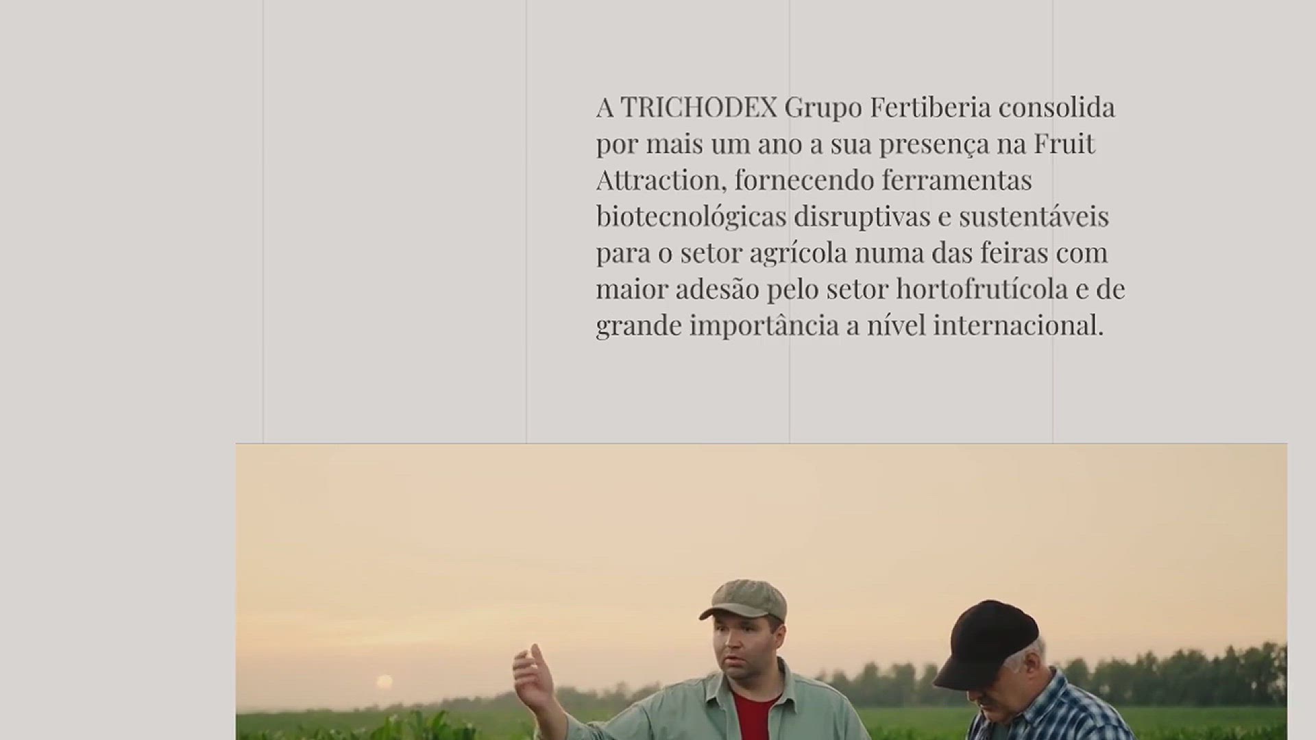 A TRICHODEX Grupo Fertiberia consolida por mais um ano a sua presença na Fruit Attraction, fornecendo ferramentas biotecnológicas disruptivas e sustentáveis para o setor agrícola numa das feiras com maior adesão pelo setor hortofrutícola e de grande importância a nível internacional.