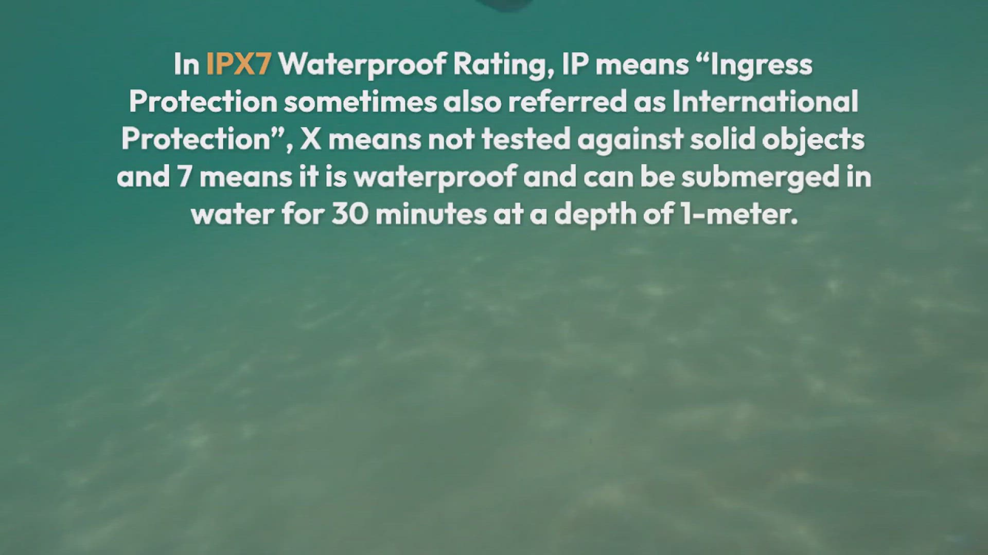 In IPX7 Waterproof Rating, IP means “Ingress Protection sometimes also referred as Internation Protection”, X means not tested against solid objects and 7 means it is waterproof and can be submerged in water for 30 minutes at a depth of 1-meter.