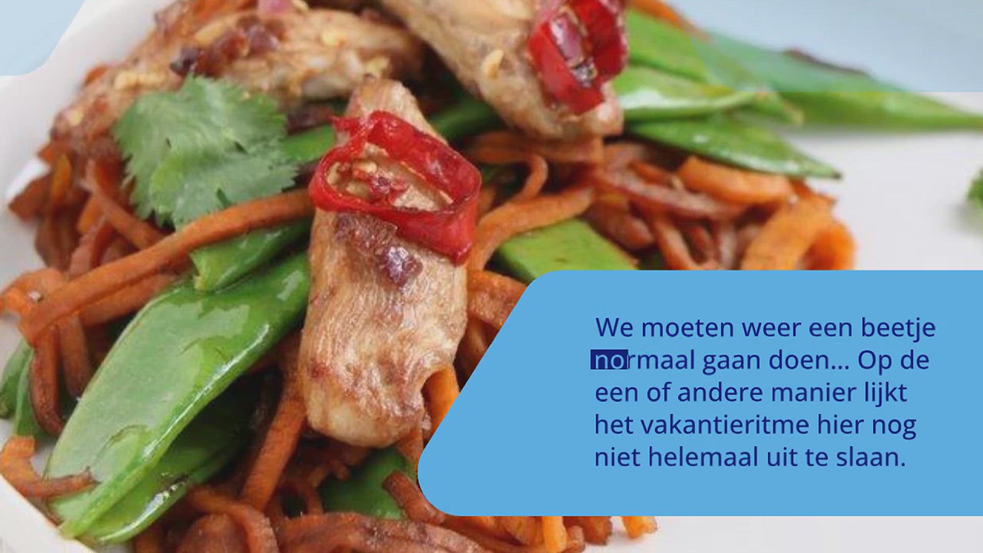 Zoete aardappel noedels met peultjes en pittige kip