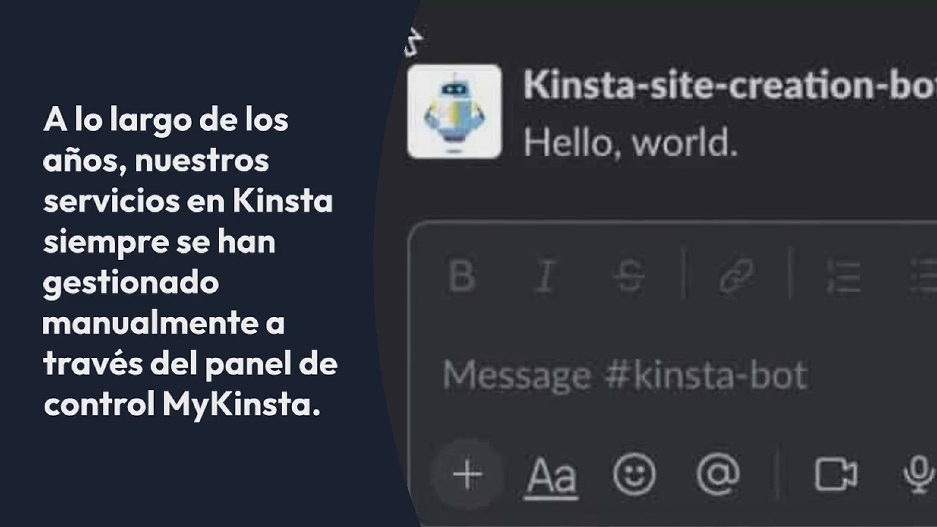 A lo largo de los años, nuestros servicios en Kinsta siempre se han gestionado manualmente a través del panel de control MyKinsta. Sin embargo, con la introducción de la API de Kinsta y el lanzamiento continuo de nuevos endpoints de la API, puedes mejorar tu juego desarrollando un método personalizado para interactuar con los servicios de Kinsta. Uno de estos medios es desarrollar un Slackbot para supervisar y gestionar actividades como la creación de sitios.