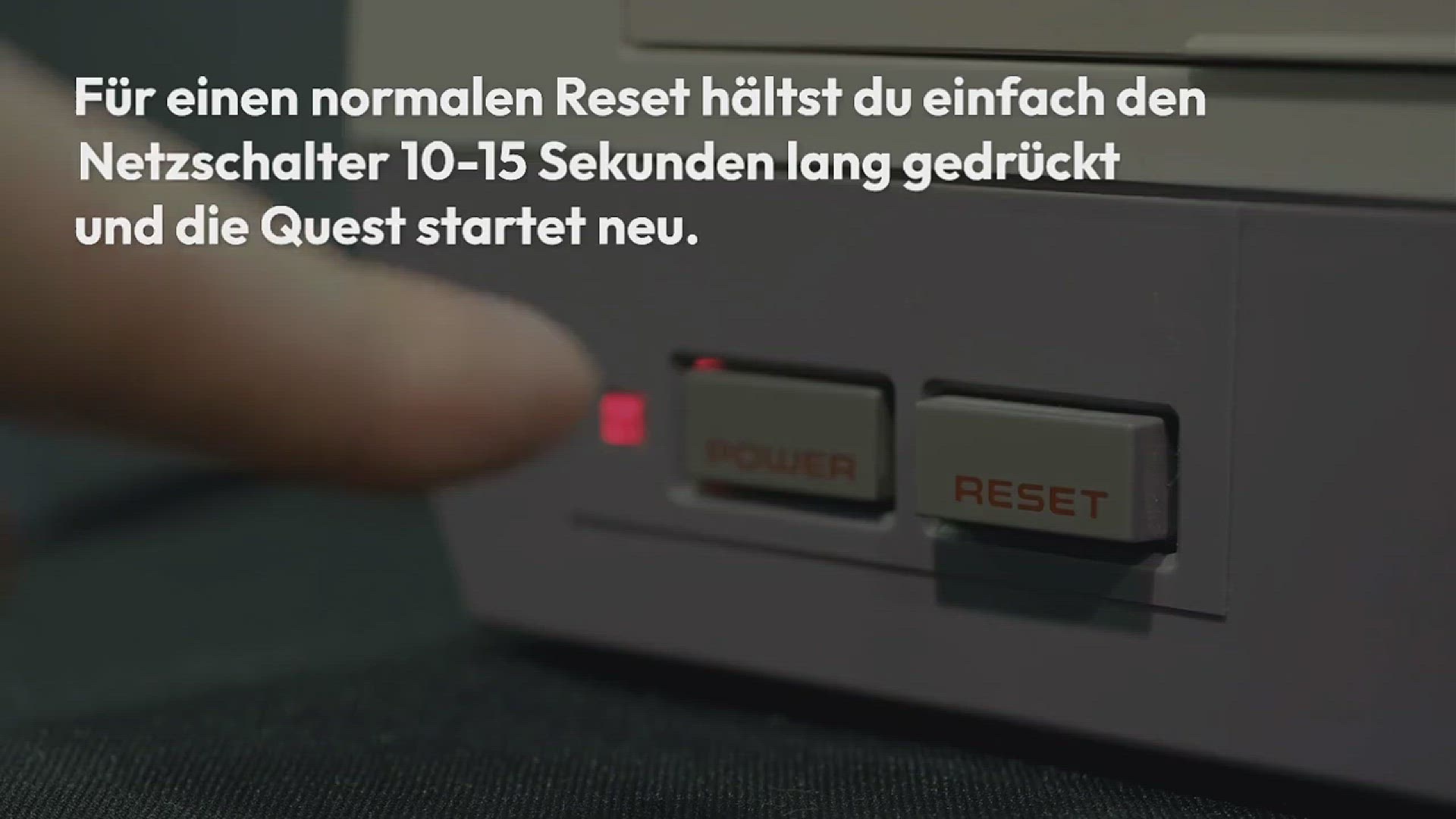 Für einen normalen Reset hältst du einfach den Netzschalter 10-15 Sekunden lang gedrückt und die Quest startet neu.