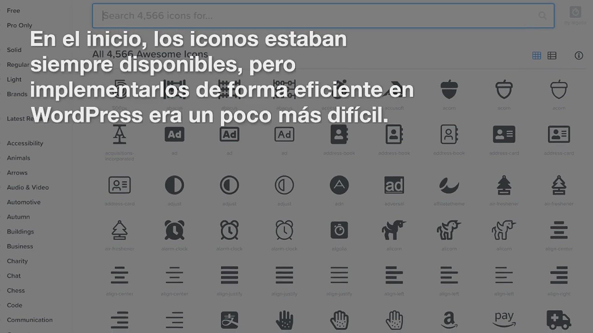 En el inicio, los iconos estaban siempre disponibles, pero implementarlos de forma eficiente en WordPress era un poco más difícil. Se podían solucionar algunos problemas con los sprites, pero no siempre fueron una buena forma de avanzar, y cuando empezaron a aparecer las pantallas de retina, el problema se amplió (literalmente).