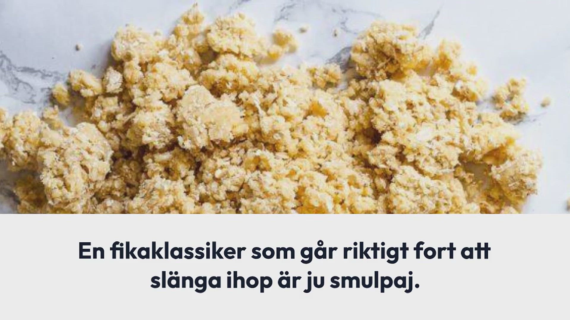 En fikaklassiker som går riktigt fort att slänga ihop är ju smulpaj. Det går att göra med alla möjliga frukter och bär som du har hemma – färska, frysta eller till och med inlagda. En räddare i nöden helt enkelt när du får oväntat besök.