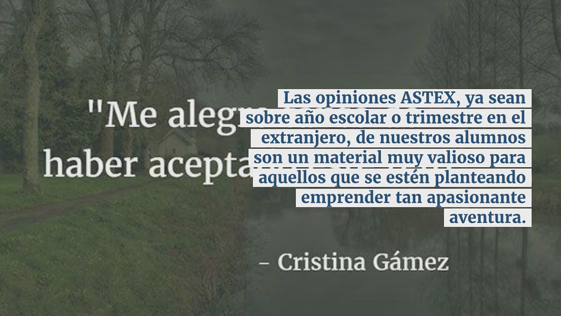 Las opiniones ASTEX, ya sean sobre año escolar o trimestre en el extranjero, de nuestros alumnos son un material muy valioso para aquellos que se estén planteando emprender tan apasionante aventura.
