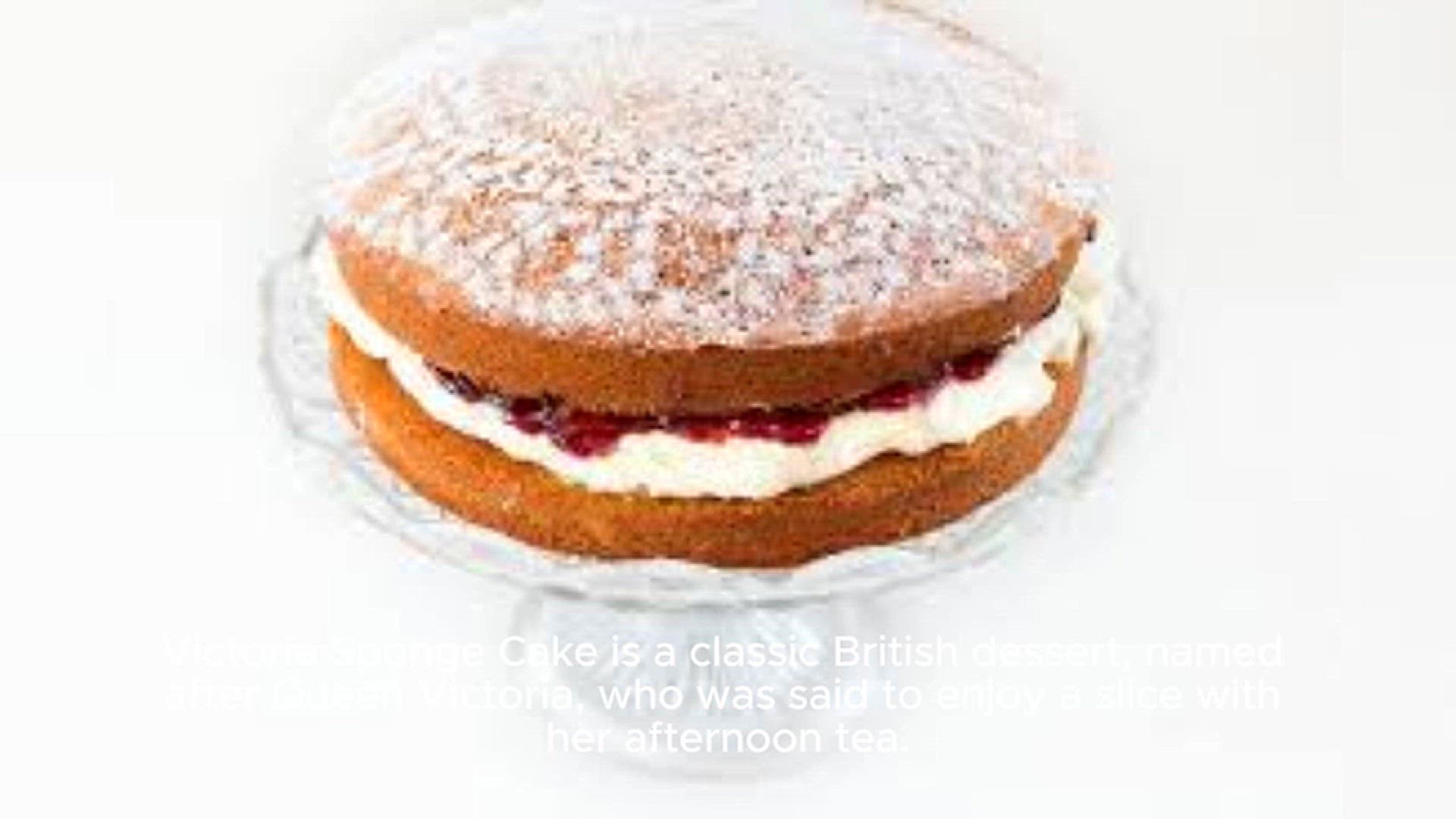 Victoria Sponge Cake is a classic British dessert, named after Queen Victoria, who was said to enjoy a slice with her afternoon tea.