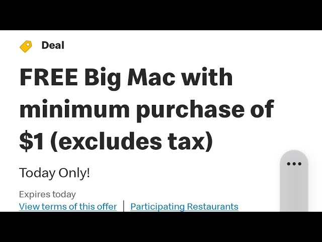 McDonald's give out free big mac with the purchase of something for a dollar. This was a good deal but it has pasted. I still believe you should get the app. I am always getting my one dollar large fries everyday. This is a good app if you are McDonald's lovers. I always using the deals to save money.