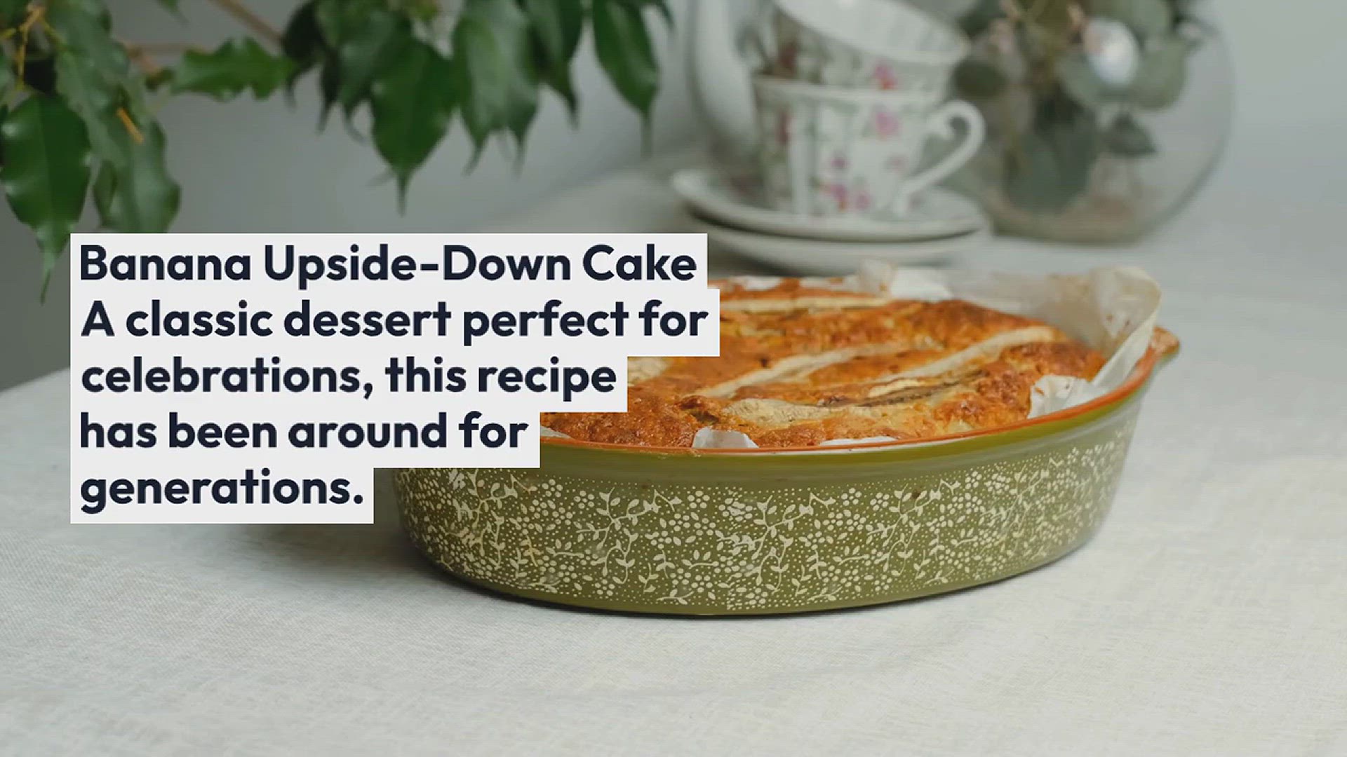 Bananas are baked in a cake batter and then flipped upside down so the fruit is on top.