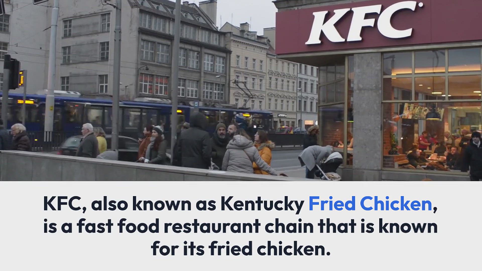KFC, also known as Kentucky Fried Chicken, is a fast food restaurant chain that is known for its fried chicken.