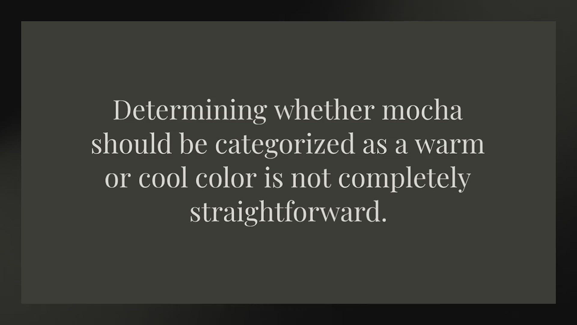Mocha is a rich brown color that can appear to have warm reddish undertones or cool grayish undertones depending on the specific shade. Determining whether mocha should be categorized as a warm or cool color is not completely straightforward. There are arguments on both sides.