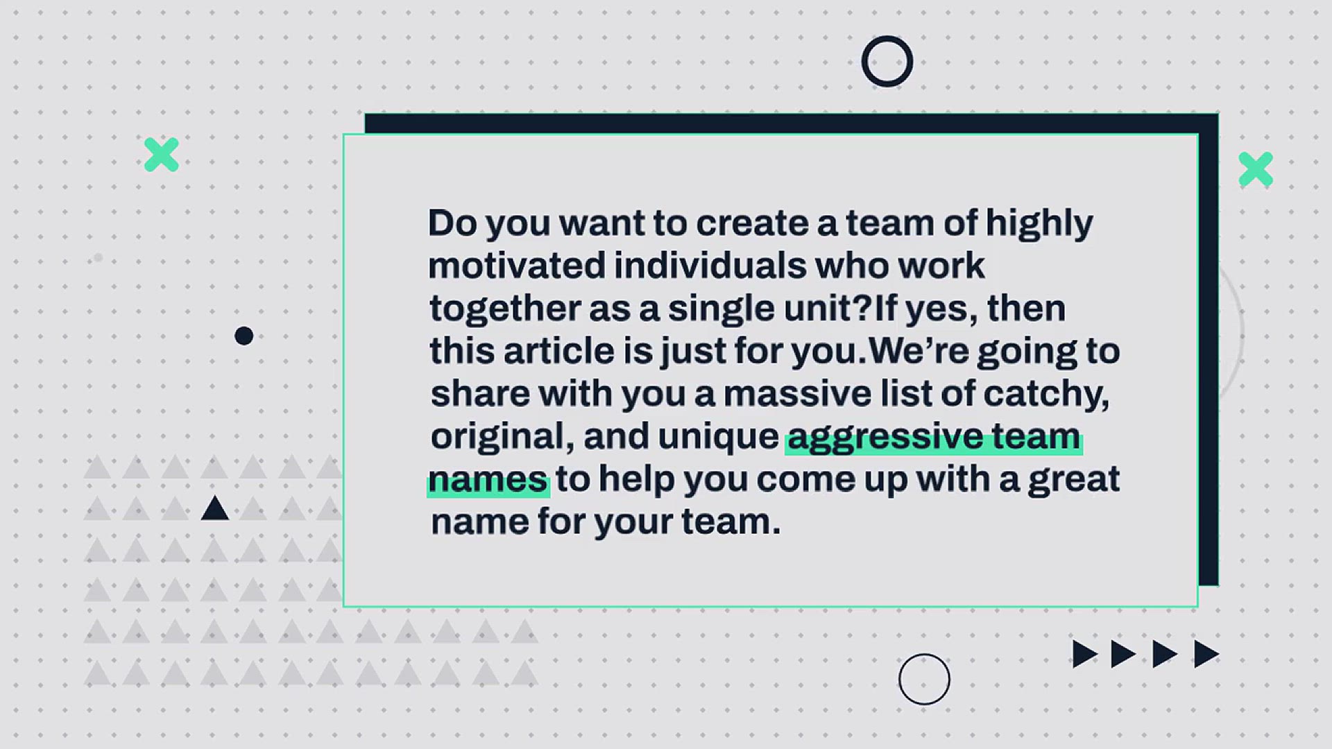Do you want to create a team of highly motivated individuals who work together as a single unit? If yes, then this article is just for you. We’re going to share with you a massive list of catchy, original, and unique aggressive team names to help you come up with a great name for your team.