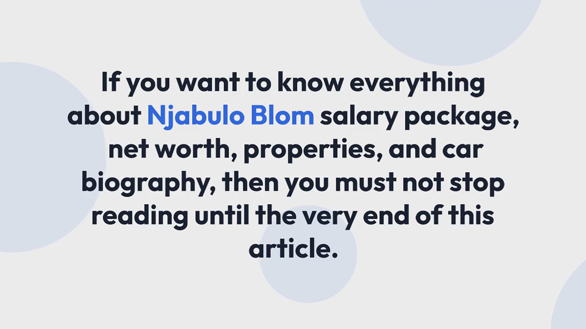 Njabulo Blom Salary Per Month in Rands & Net Worth: