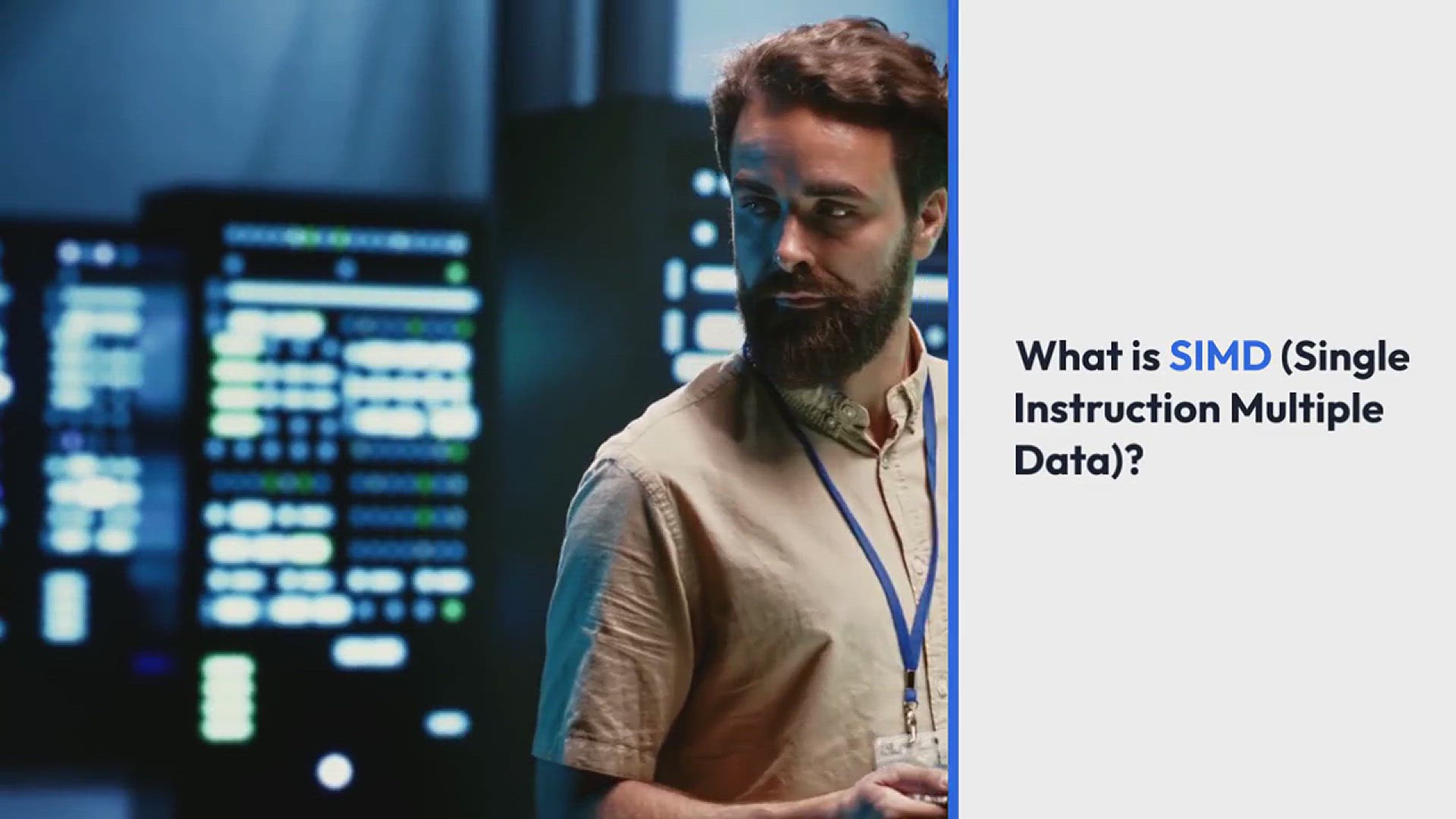 SIMD, or Single Instruction, Multiple Data refers to a specific type of multi-processing architecture or system. Technically, it performs a single operation at the same time on multiple pieces of data.