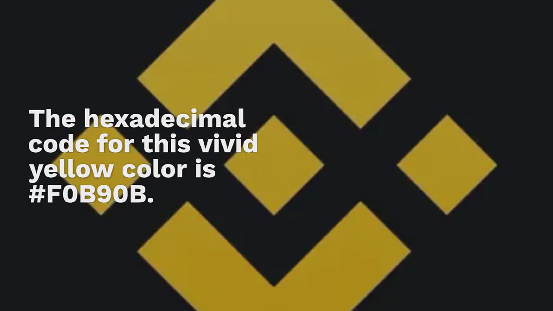 Binance mainly uses vivid yellow for their main logo, social media pages, and also website elements such as buttons, icons, and banners.The hexadecimal code for this vivid yellow color is #F0B90B.When it comes to the respective RGB value of that same color, you’ll find 240 red, 185 green, and 11 blue.In HSL, vivid yellow would have a hue of 46, 91% saturation, 49% lightness.