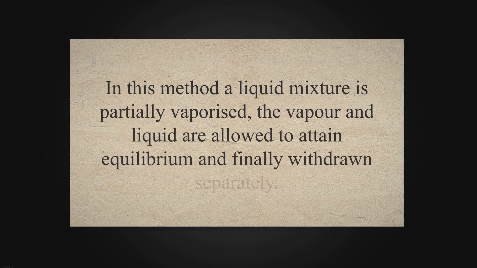Flash distillation is normally carried out in a continues manner. In this method a liquid mixture is partially vaporised, the vapour and liquid are al