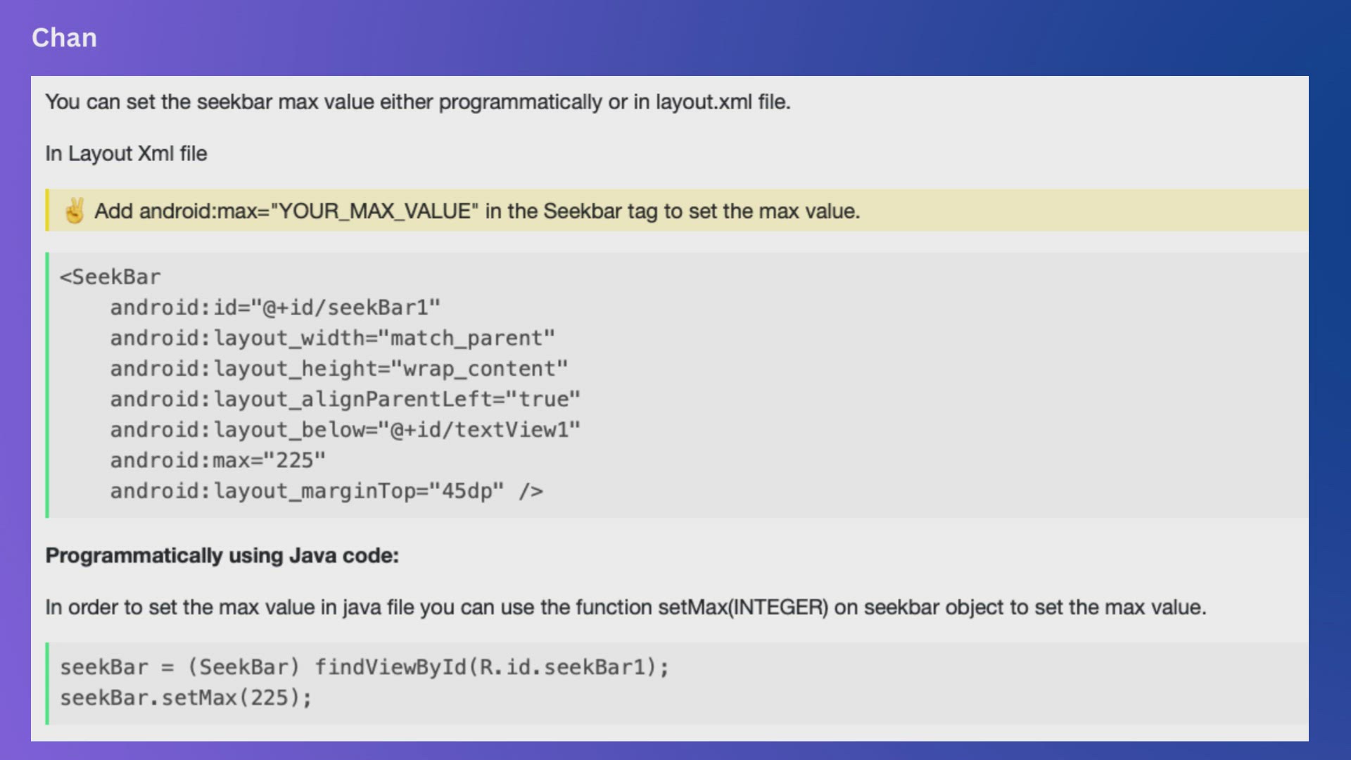 Change Max and Min Value of Android Seekbar Programmatically