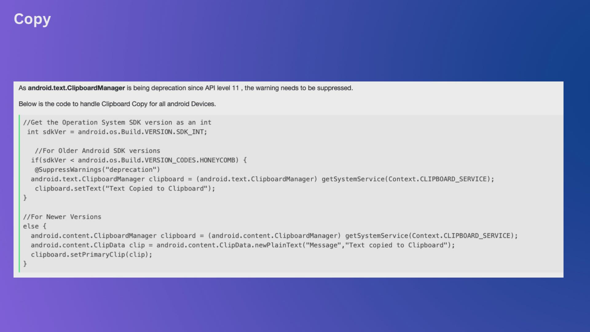 Copy Text to Android Clipboard Programmatically ClipboardManager