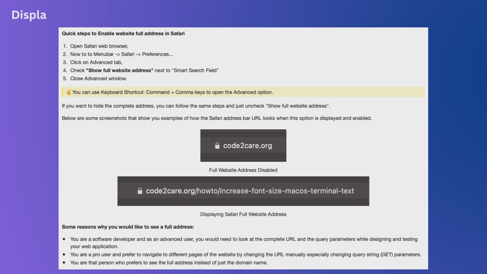 Display full website URL - Address in Safari macOS Browser