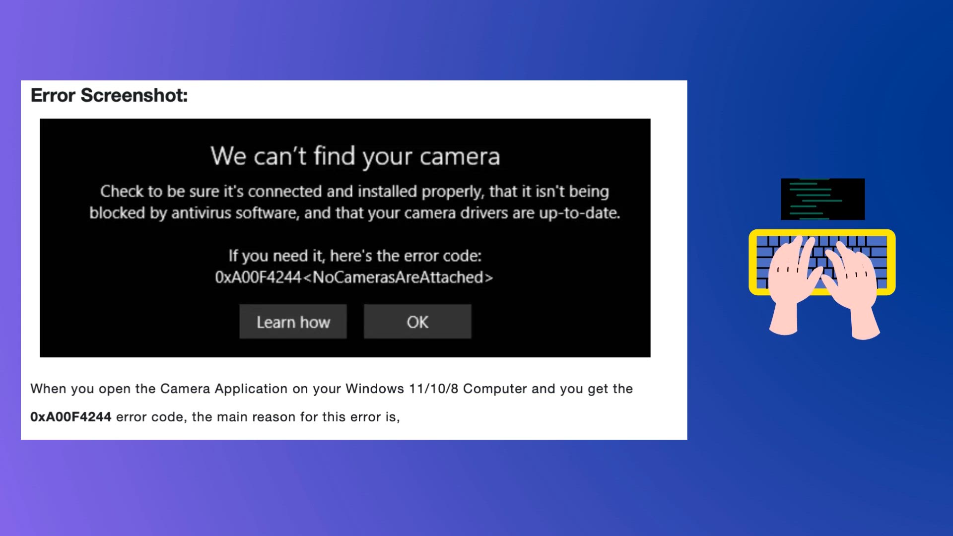 Fix - Microsoft Windows Error Code 0xA00F4244 NoCamerasAreAttached