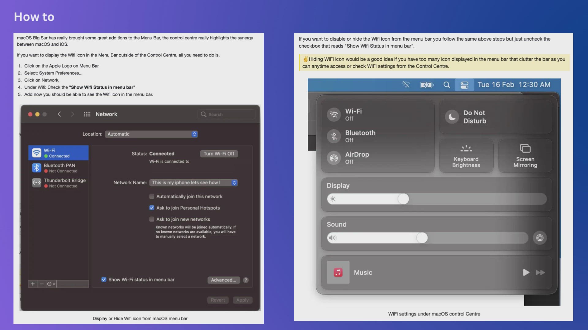 How to hide or display Wifi icon in macOS Bug Sur Menu Bar