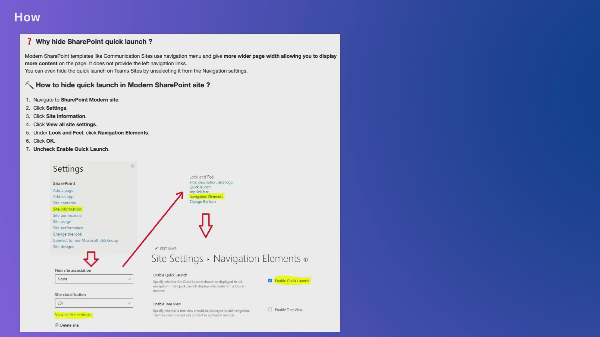 How to hide or remove quick launch left navigation from SharePoint Online Modern site page