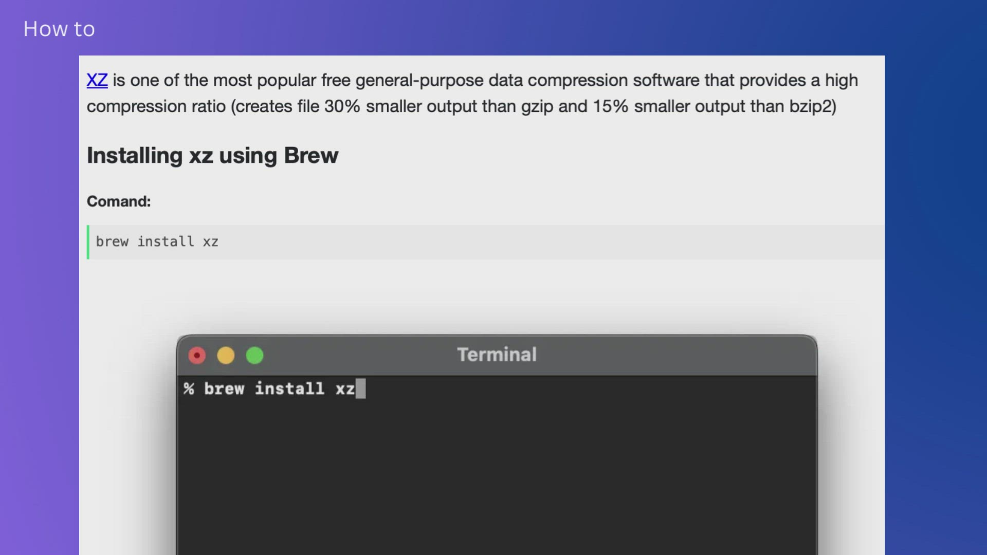 Video thumbnail for How to install xz data compression software using Brew