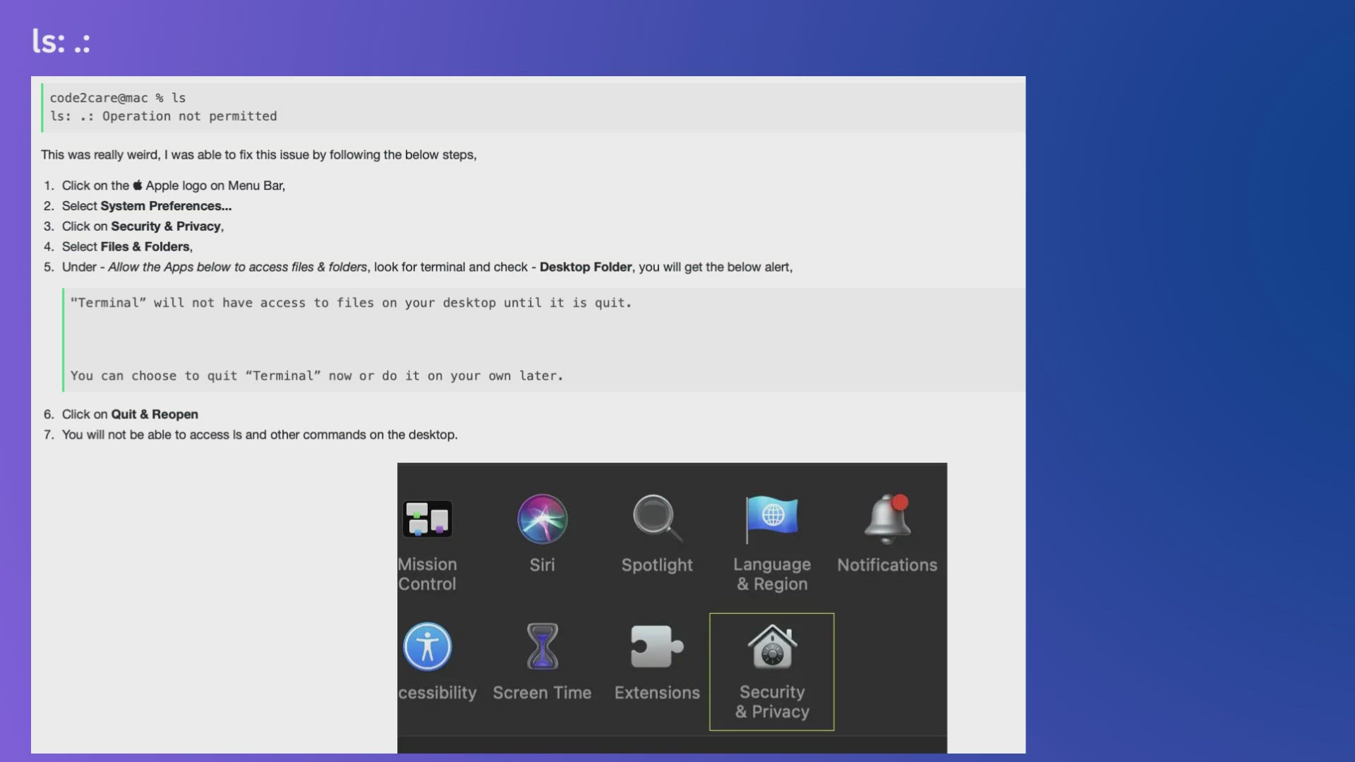 ls . Operation not permitted - Mac Terminal ZSH Error