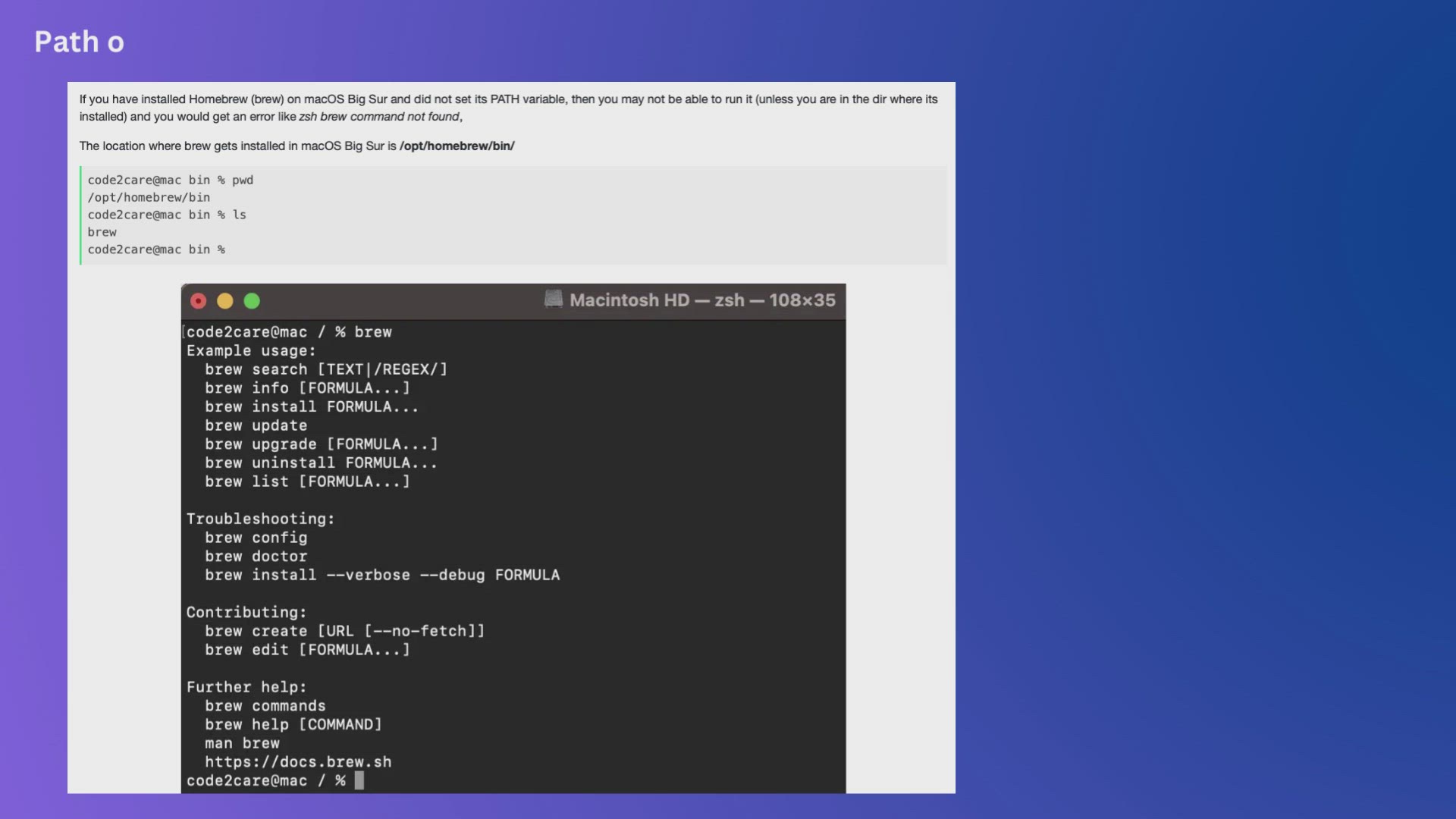Path of homebrew (brew) installation in macOS Big Sur