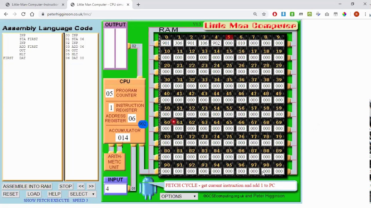 Link to CPU simulator: https://peterhigginson.co.uk/lmc/