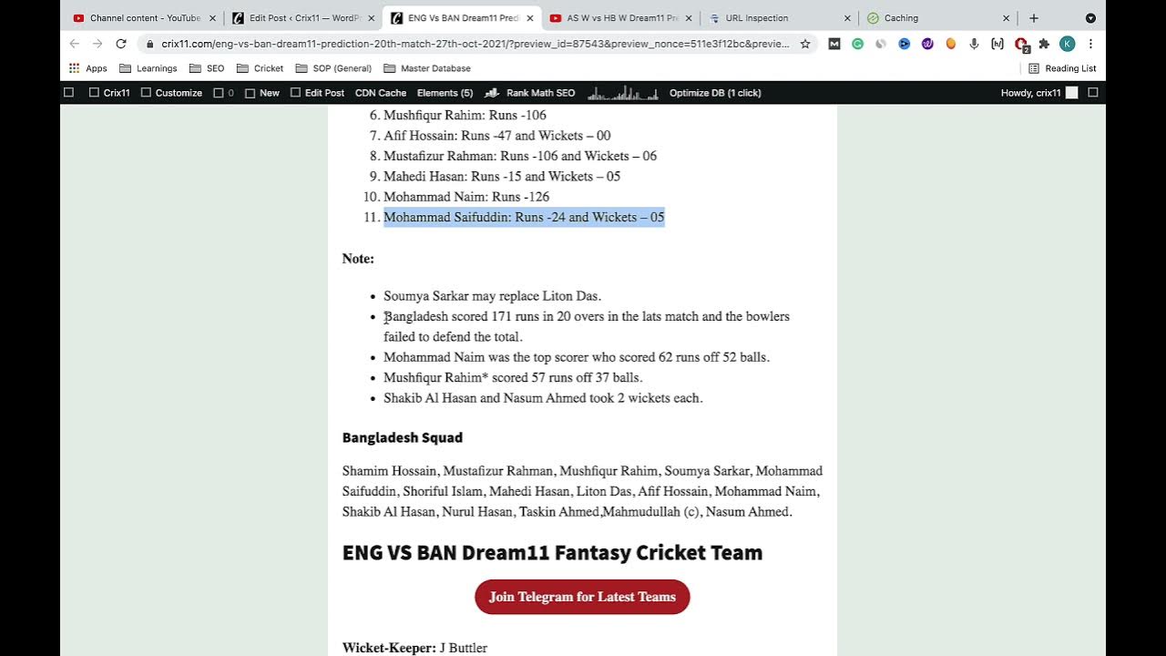 In this video, you will get all the information on ENG vs BAN Dream11 Team.