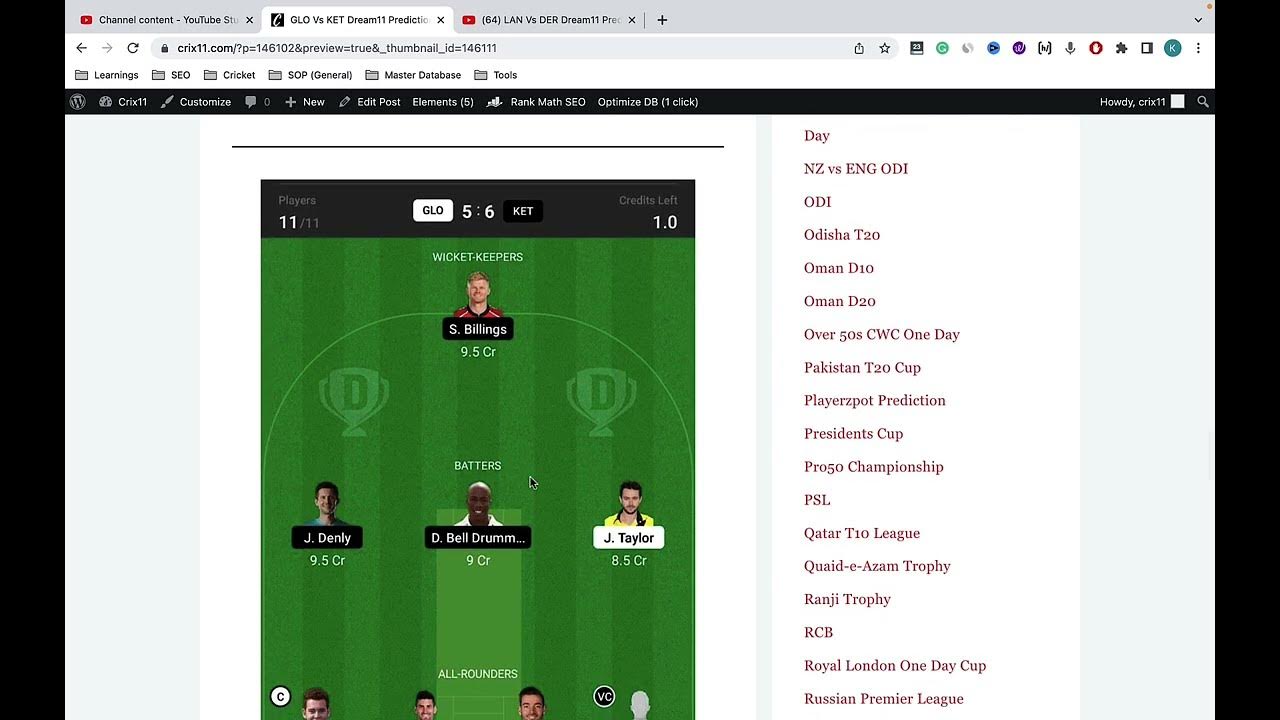 In this video, you will get all the information on GLO vs KET Dream11 Prediction.